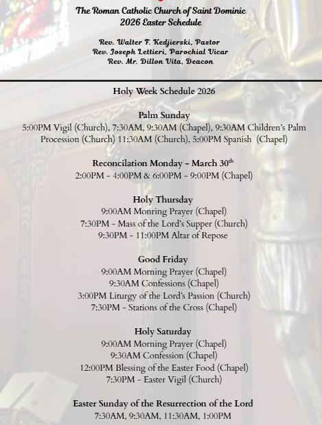 You may also schedule an appointment with a priest by calling the Parish Office